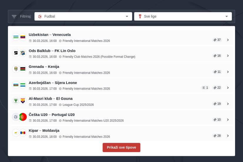 Ako hoćete, možete pogledati koje su opcije za uživo klađenje u online kladionicama u Srbiji za koje je neophodno da pratite fudbal uživo Srbija prenos.